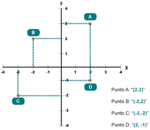 1º. Se indica la posición en la línea horizontal, que indica la posición o distancia de dicho punto en el eje X (posición a derecha o izquierda del origen según sea positivo o negativo el valor).