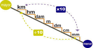 • Para pasar de una unidad a la inmediatamente menor multiplicamos por 10.