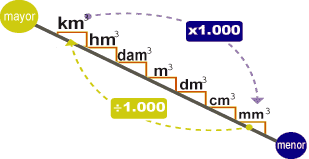 Las unidades de medida aumentan y disminuyen de 1000 en 1000.